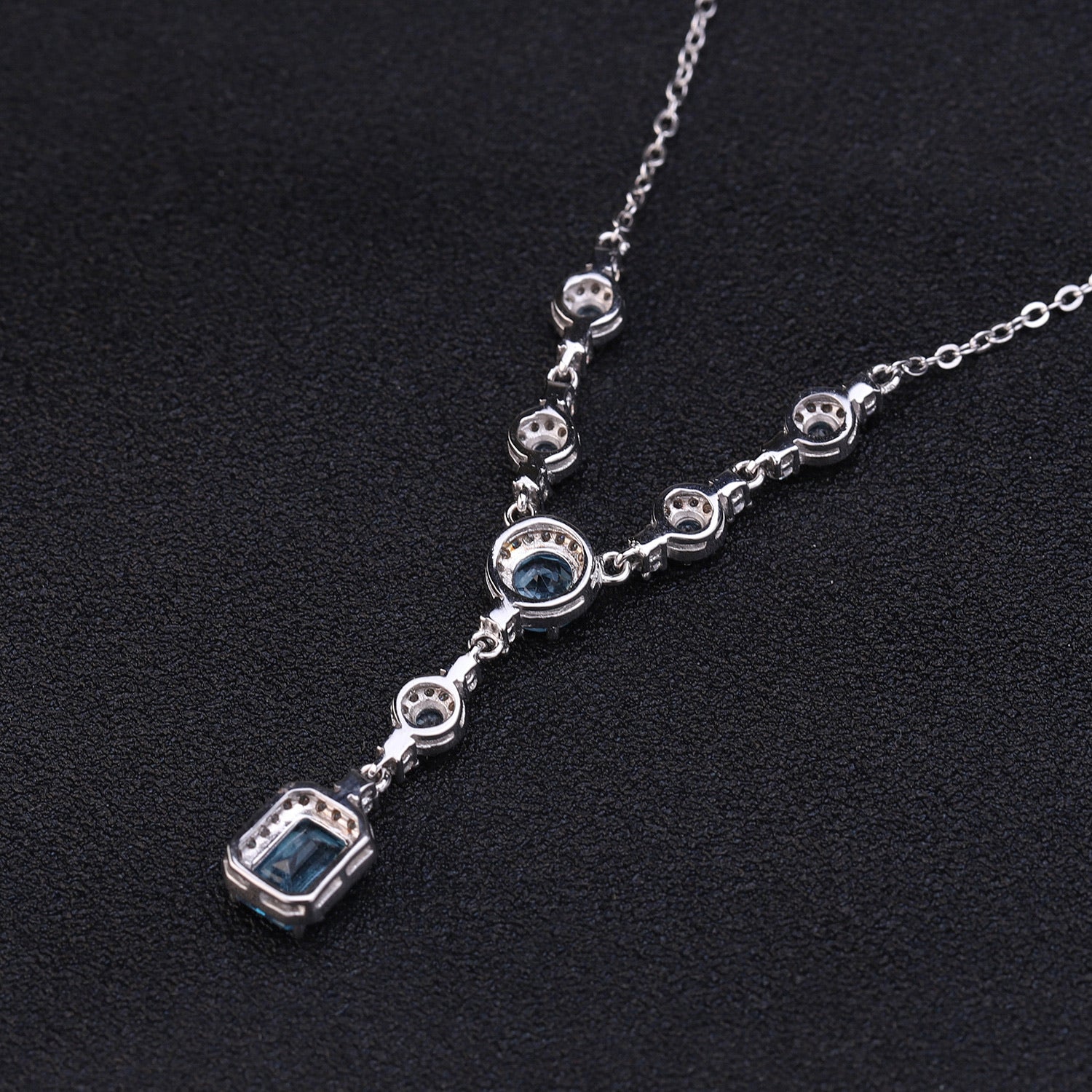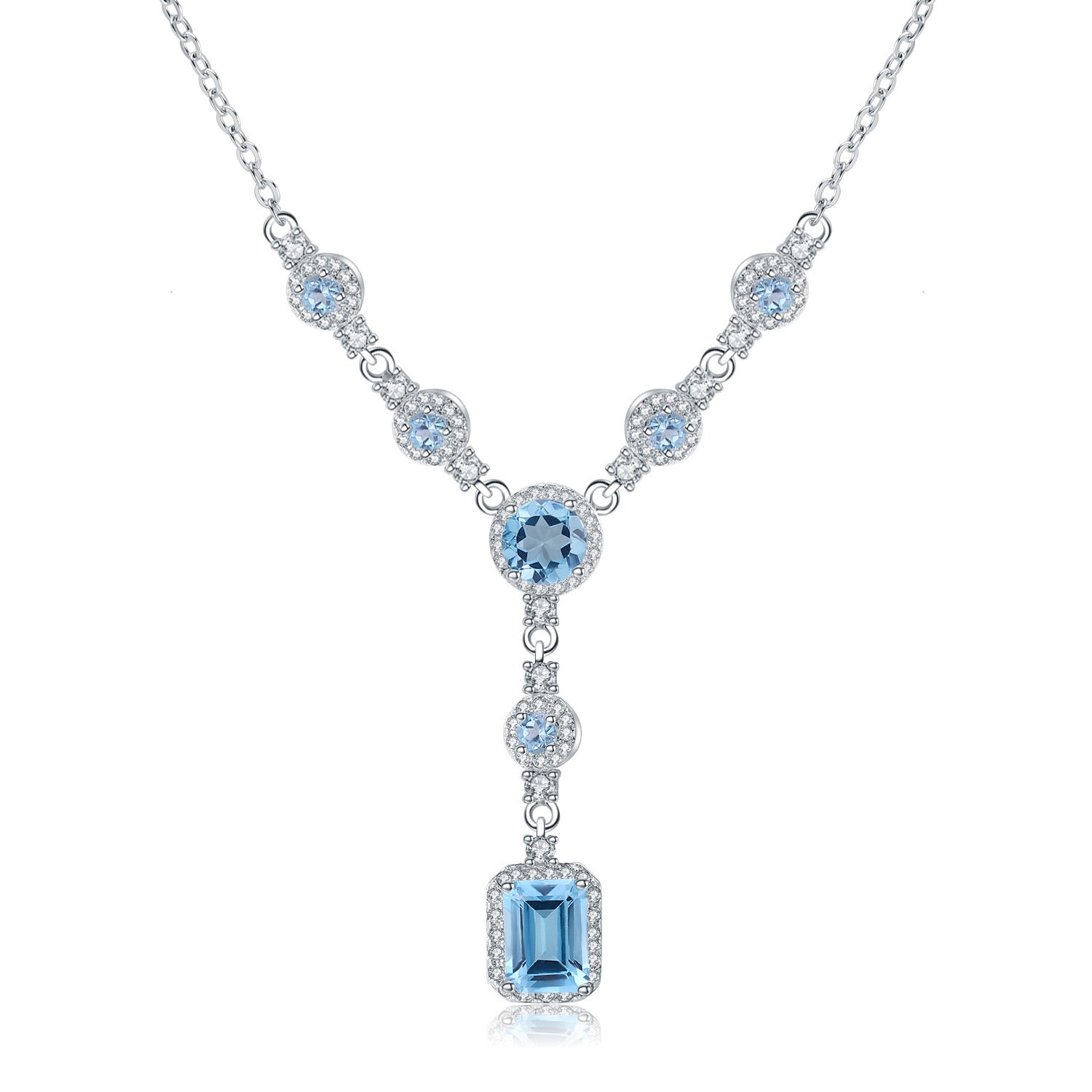 Natural Sky Blue Topaz/natural Garnet/Natural Mystic Quartz 925 Sterling Silver Necklace